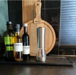 Deze elektrische peper- en zoutmolen is met één druk op de knop te bedienen terwijl jij je andere hand vrij hebt om in de pan te roeren.