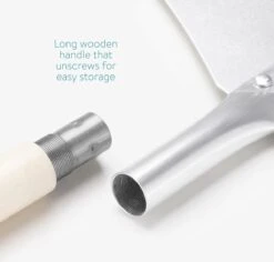 - PIZZASCHEP XL: Naast de plaat ontvang je ook een aluminium pizzaschep met extra lang houten handvat. Het handvat is los te schroeven, zodat hij ruimtebesparend kan worden opgeborgen. Aan het uiteinde zit een haak waaraan je hem kan ophangen.