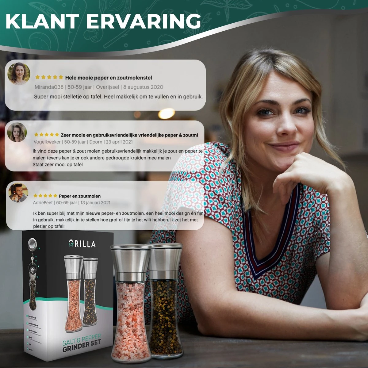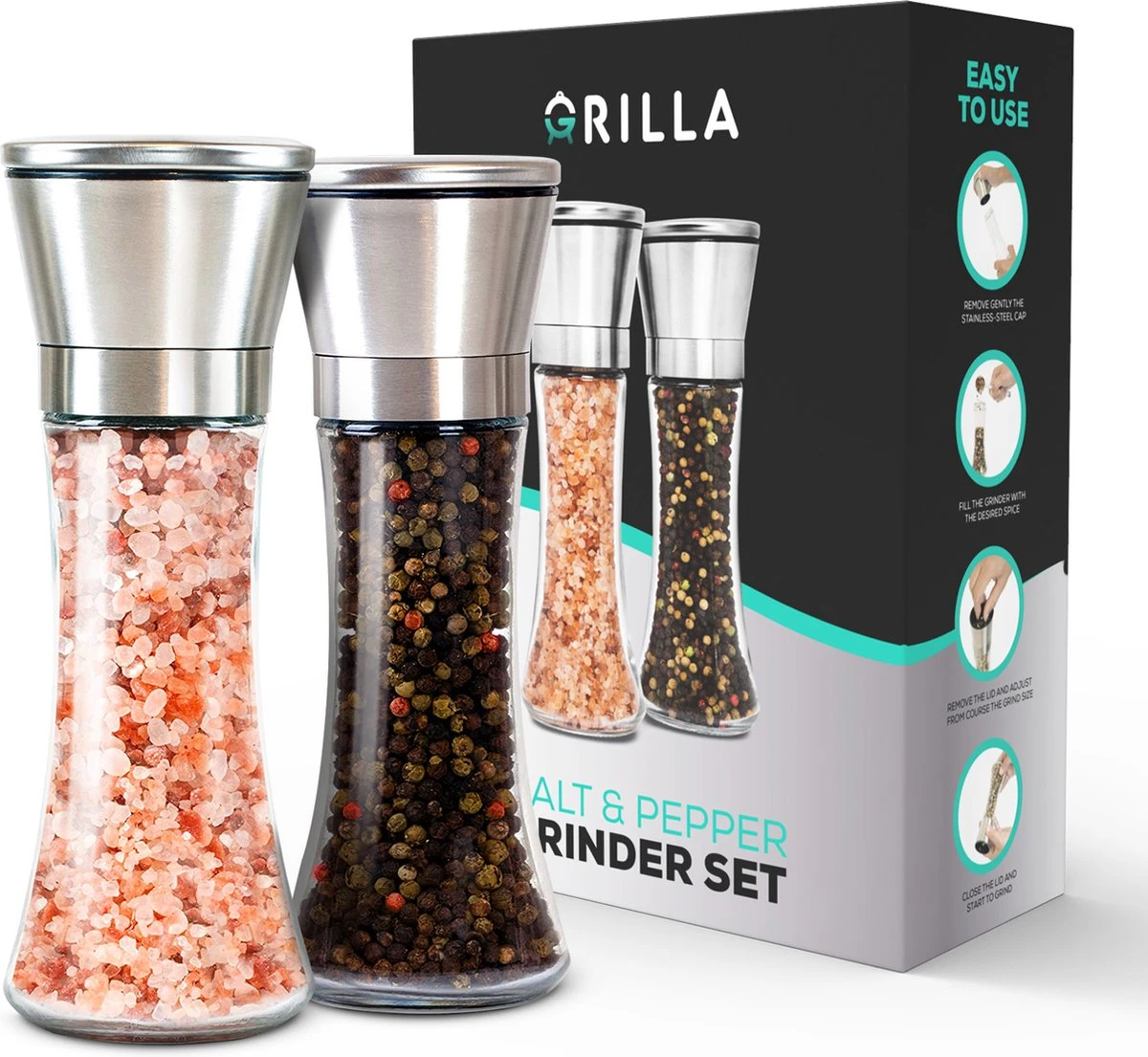 Peper En Zoutmolen Set – RVS Zout En Peperstel – Zoutvaatje En Pepermolen – 2 In 1