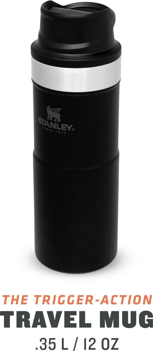 Stanley Trigger Action Travel Mug 0.35L / 12OZ Matt Black– Lekvrij | Vacuüm geïsoleerde thee en koffie reismok | BPA-vrij | Roestvrijstalen thermosbeker | Vaatwasserbestendig